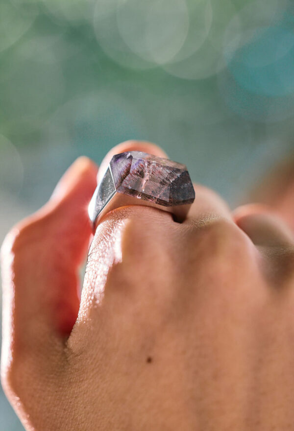 [一点もの] Goethite in Amethyst Rock Ring / Crystal / Silver