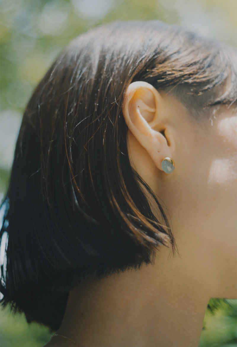 やわらかなニュアンスカラーを活かしたロックピアスを新たに制作しました。