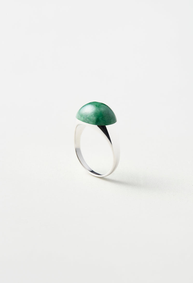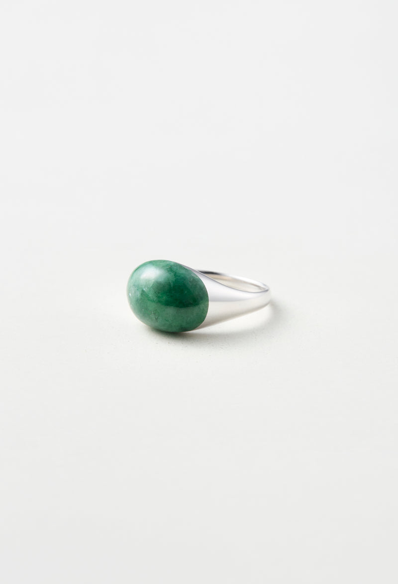 [一点もの] Green Jade Mini Rock Ring / Round / Silver