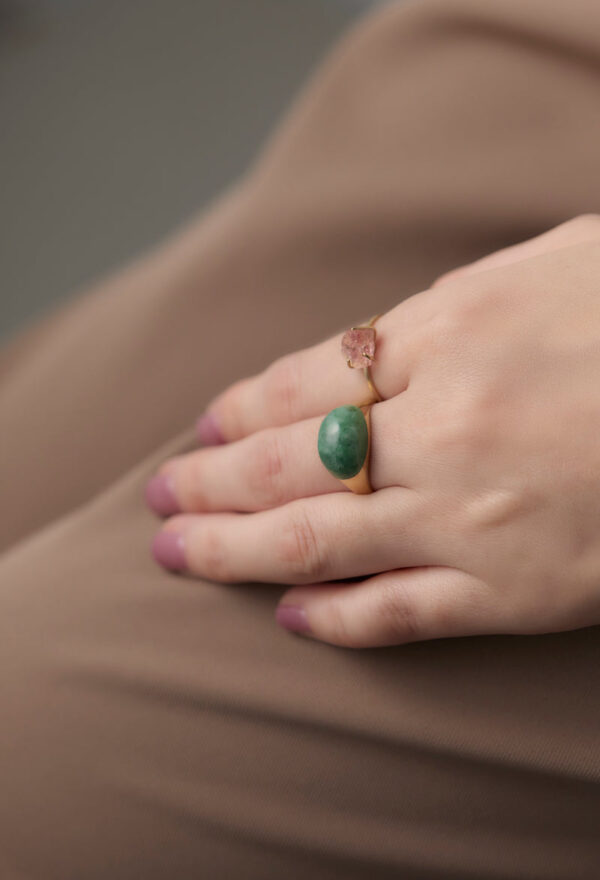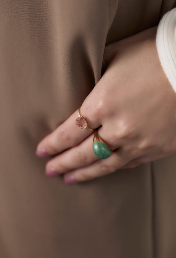 [一点もの] Green Jade Mini Rock Ring / Round / Yellow