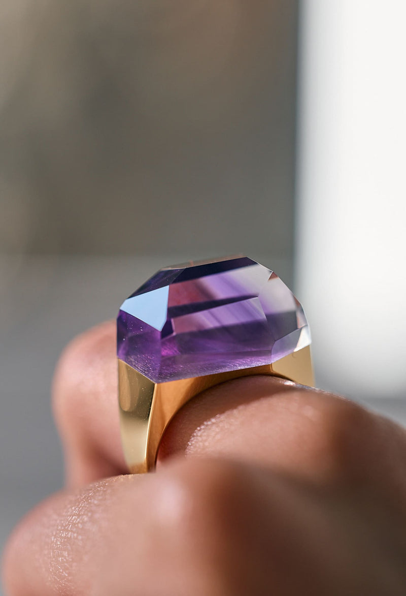 [一点もの] Phantom Amethyst Rock Ring / Crystal / Yellow