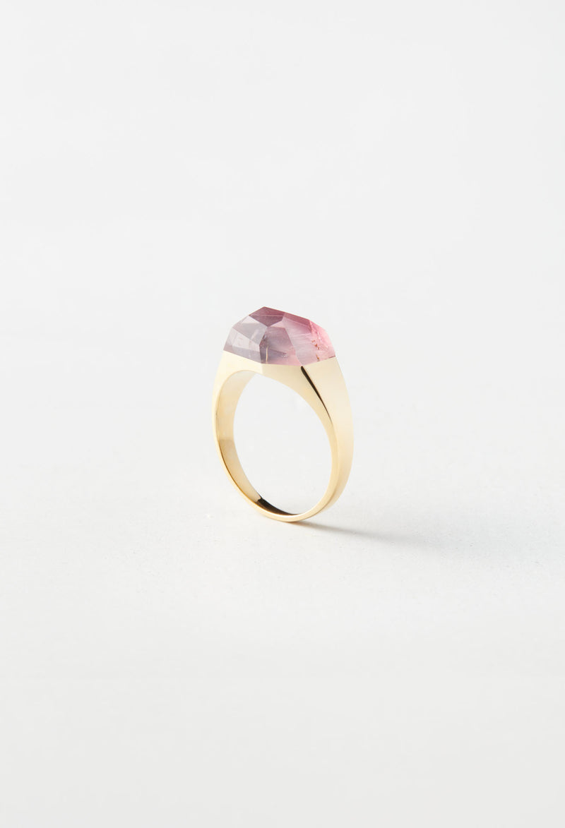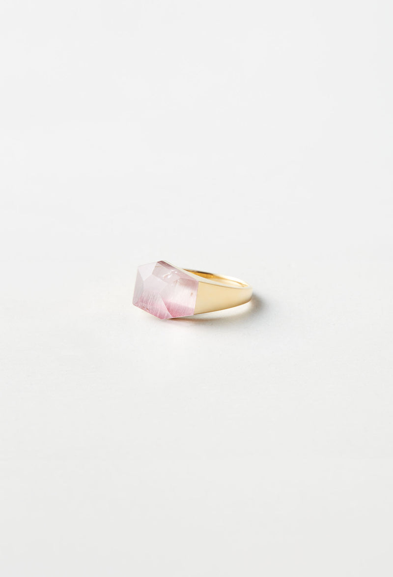 [一点もの] Pink Tourmaline Mini Rock Ring / Crystal / Yellow