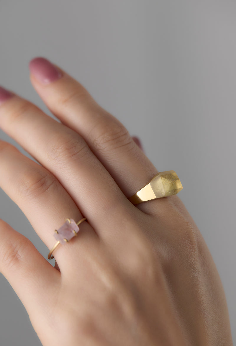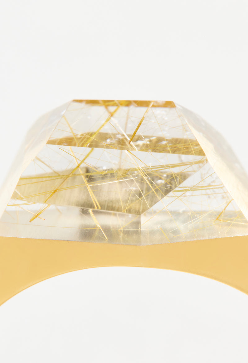 [一点もの] Rutile Quartz Mini Rock Ring / Crystal / Yellow