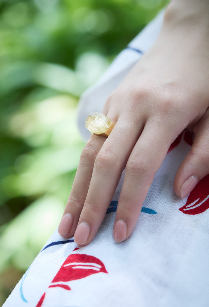 [一点もの] Rutile Quartz Rock Ring / Crystal / Yellow
