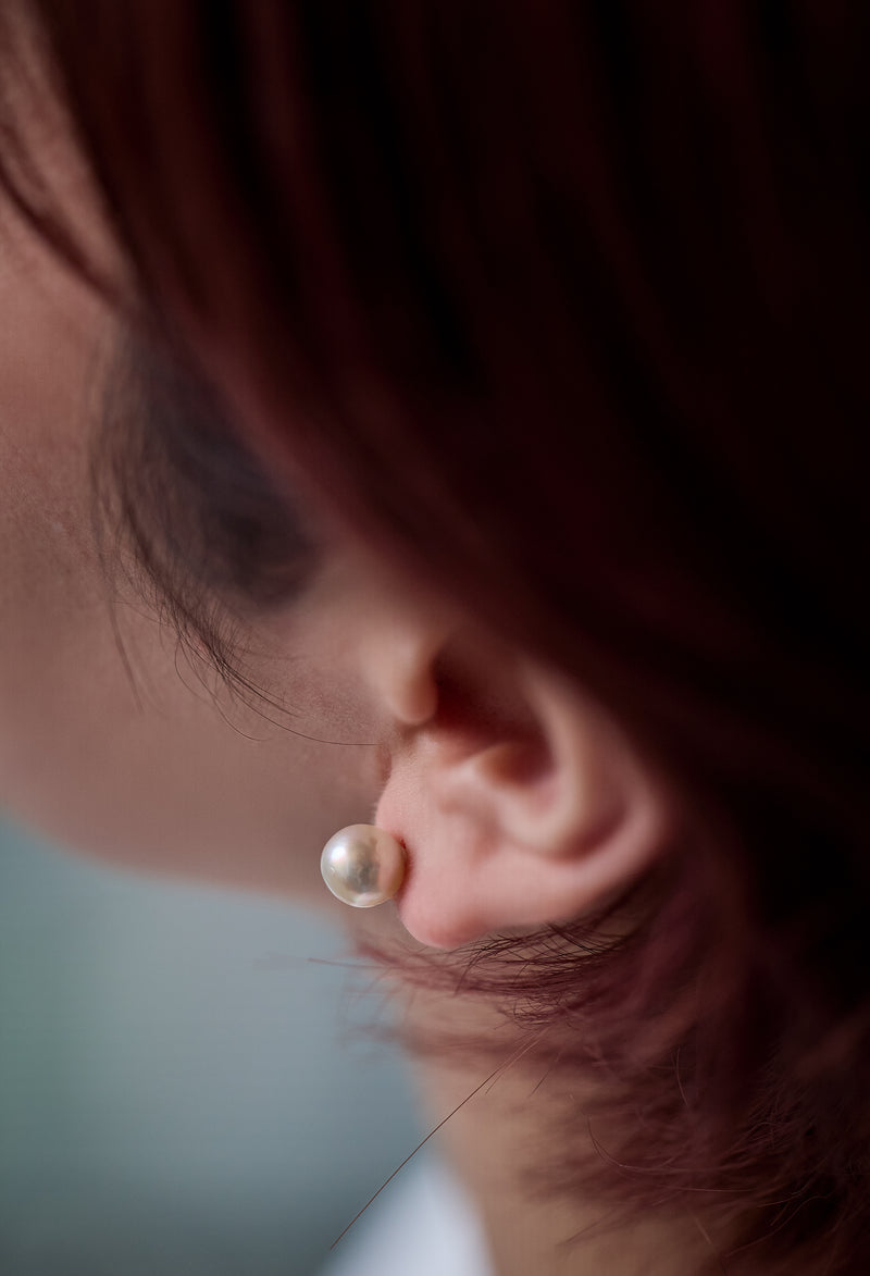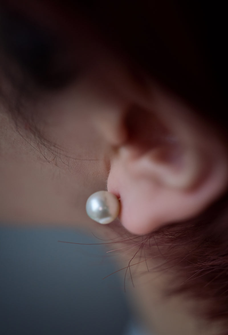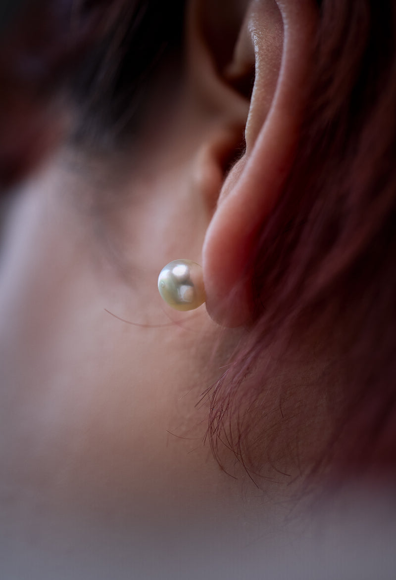 愛媛県宇和島市にあるアコヤ真珠の養殖所から良質なものを直接仕入れています。育てる期間が1年以上かかる越物(こしもの)のアコヤ真珠の中から巻きが厚くテリが素晴らしいピースを一つ一つ厳選し、ピアスに仕立てています。