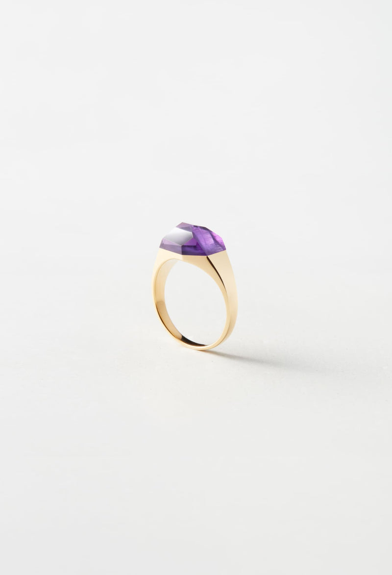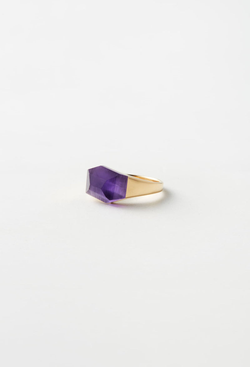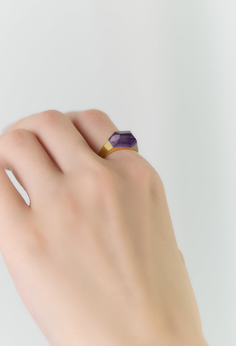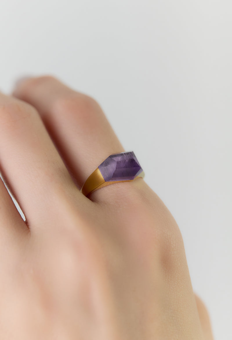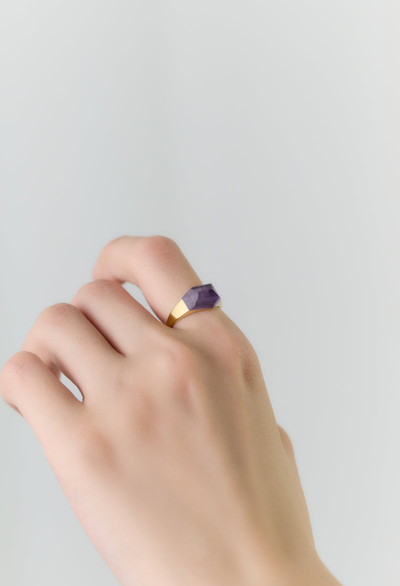 Amethyst Mini Rock Ring / Crystal / Yellow