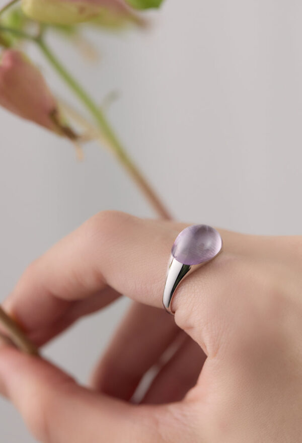 Amethyst Mini Rock Ring / Round / Silver