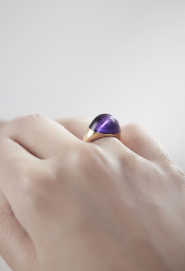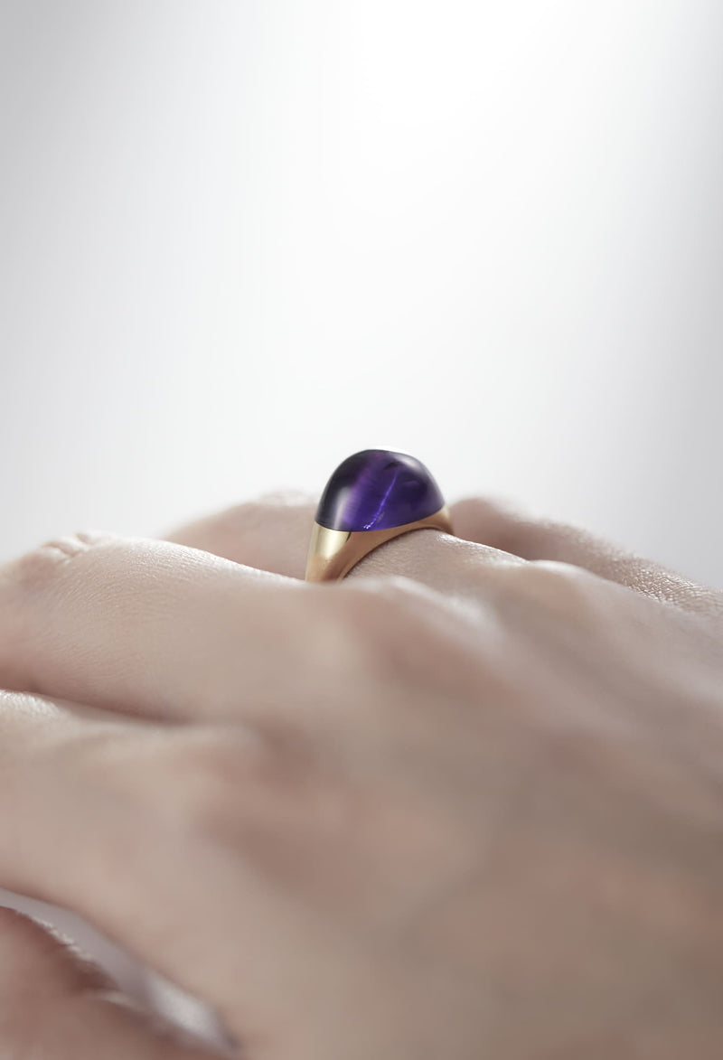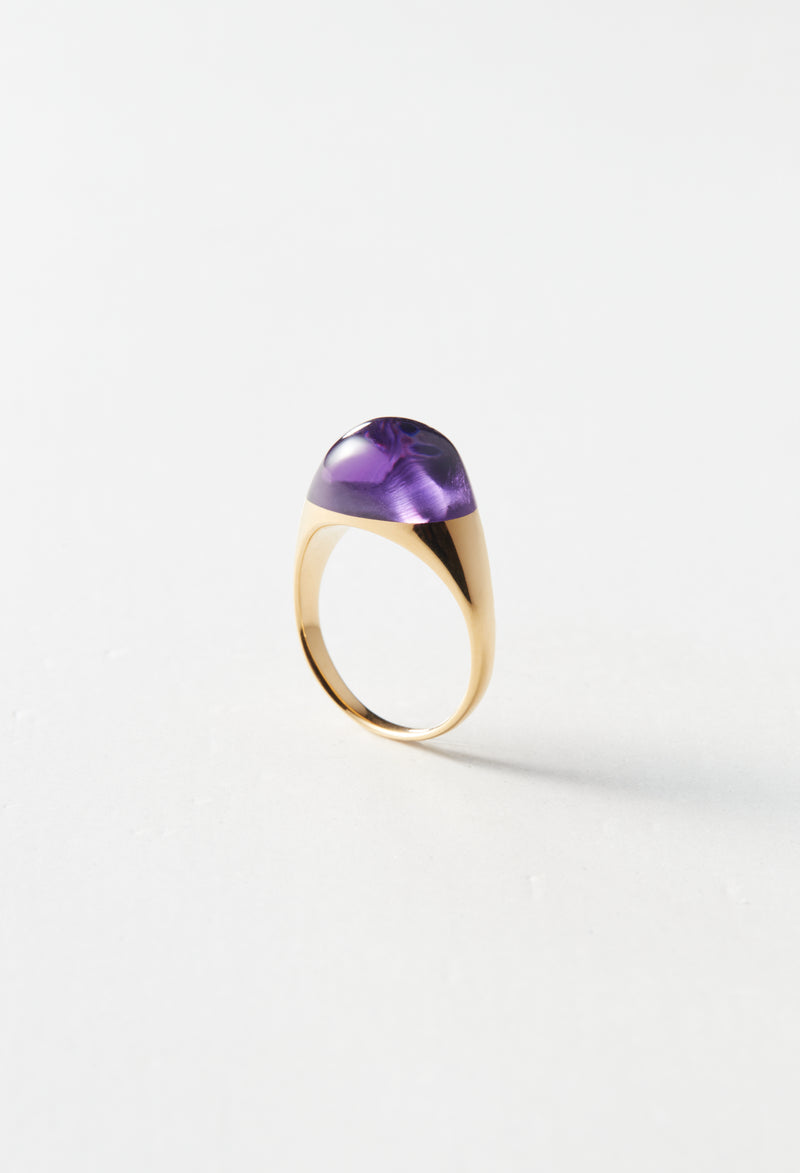 Amethyst Mini Rock Ring / Round / Yellow