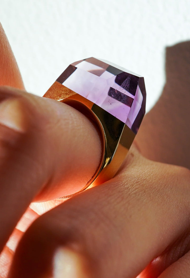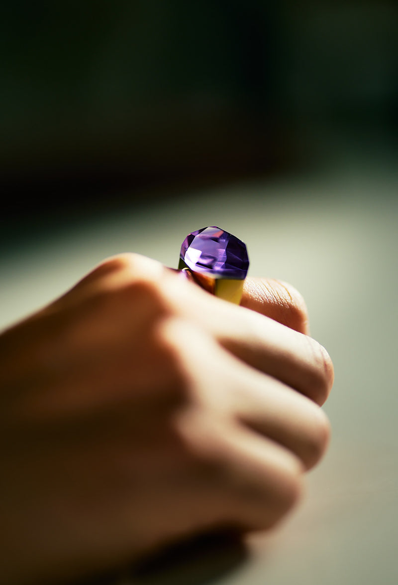 Amethyst Rock Ring / Crystal / Yellow