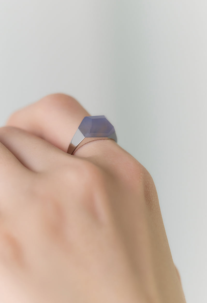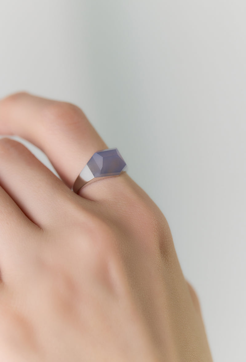 Blue Chalcedony Mini Rock Ring / Crystal / Silver