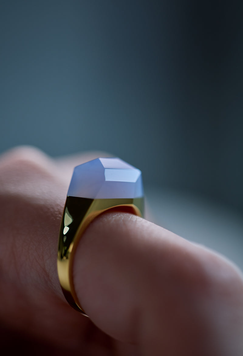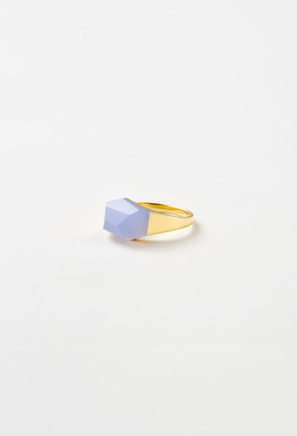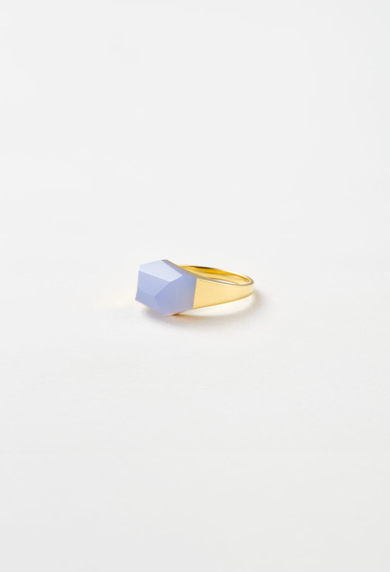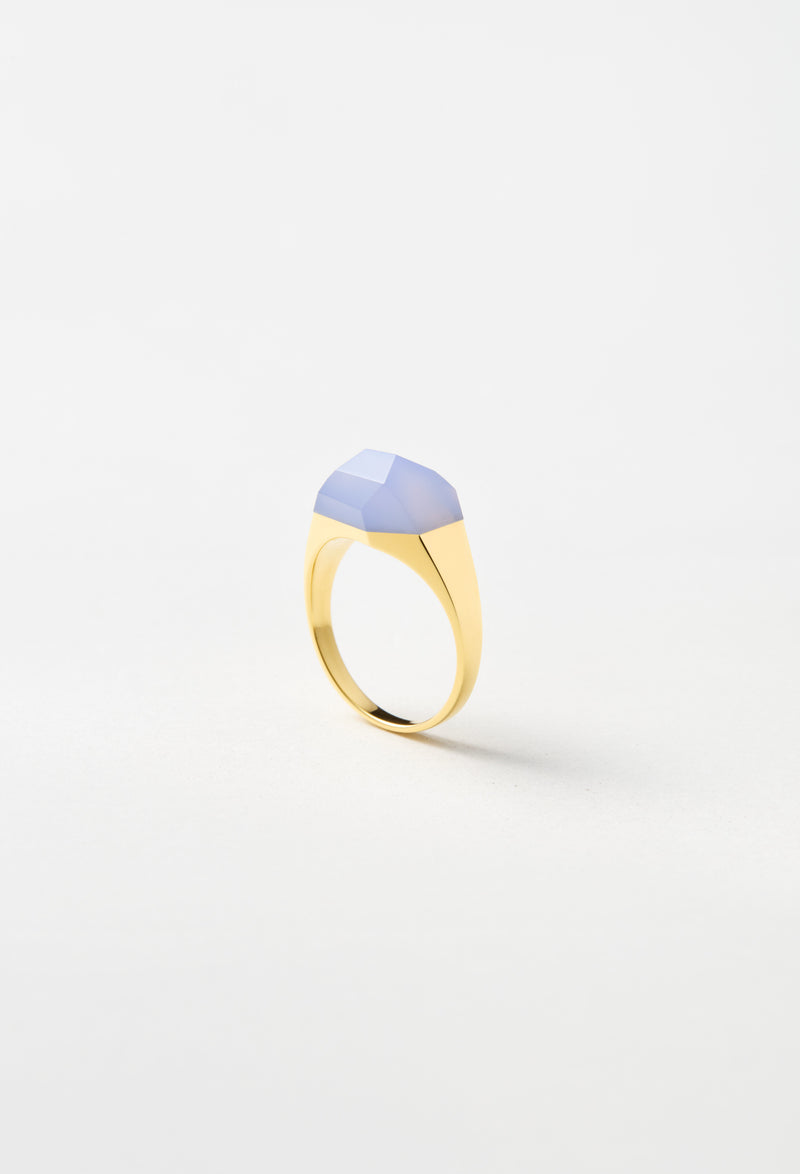 Blue Chalcedony Mini Rock Ring / Crystal / Yellow