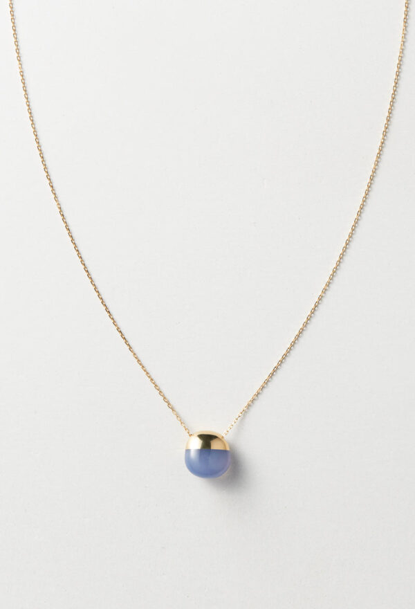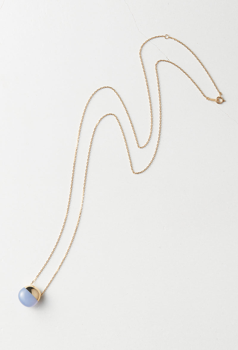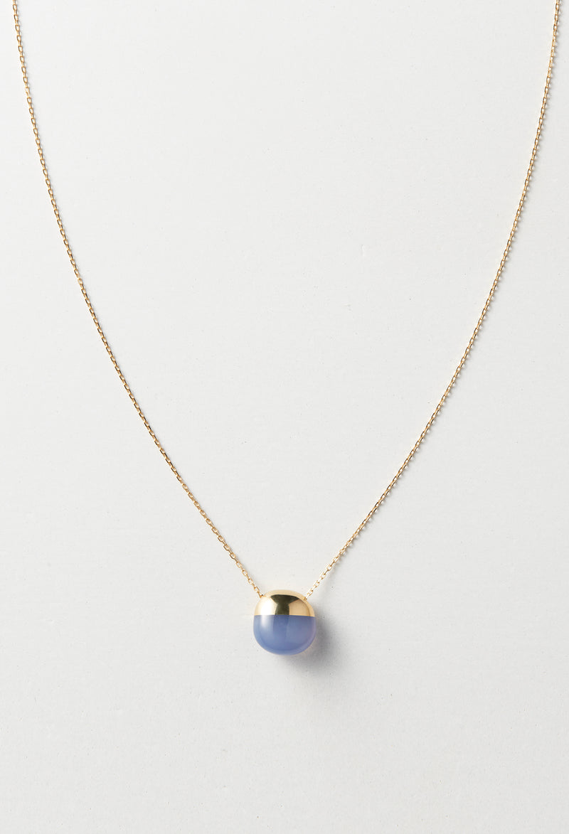 Blue Chalcedony Rock Necklace / Horizontal Round / Yellow