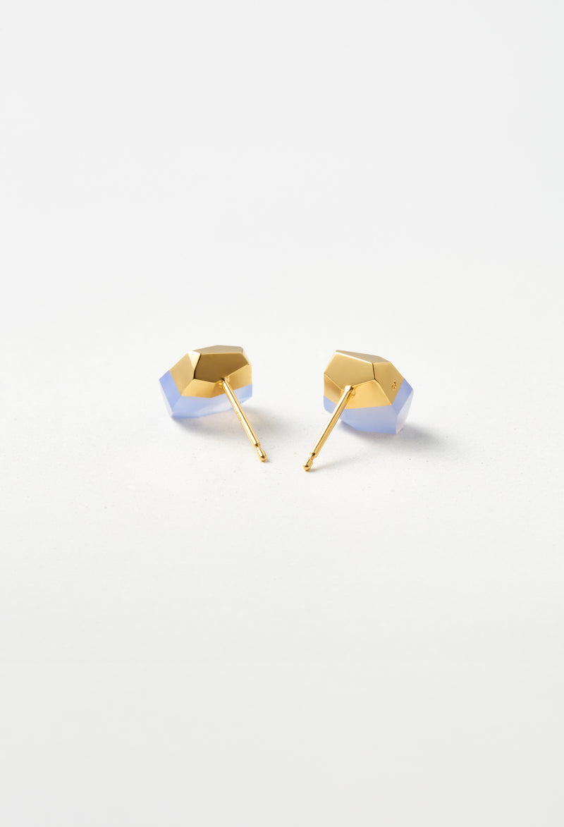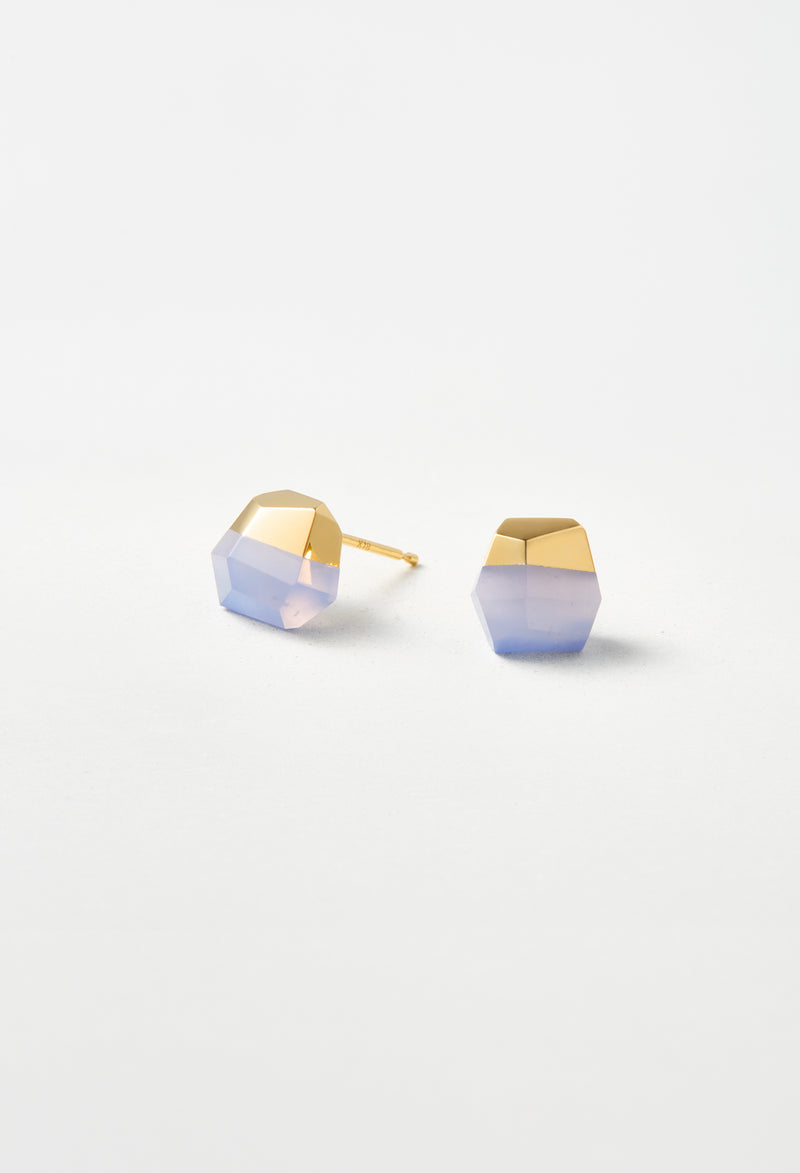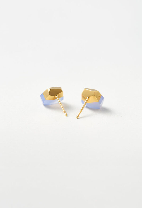 ブラジル産のブルーカルセドニー。微小な石英の結晶が合わせって固まった石で、透明感のあるブルーが特徴です。色が鮮やかで美しい部分を切り出して制作しています。