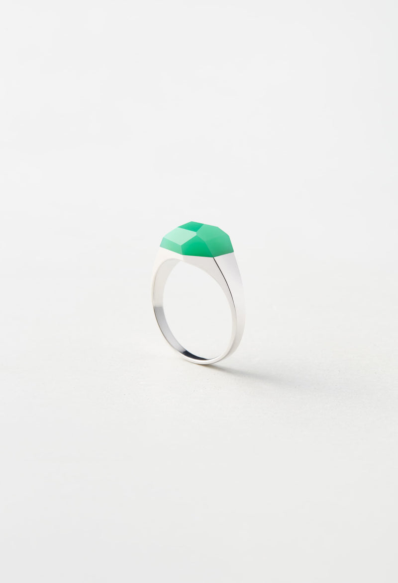 Chrysoprase Mini Rock Ring / Crystal / Silver