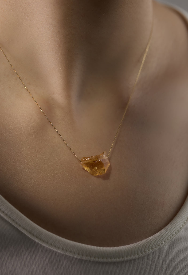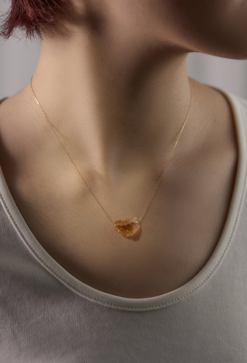 シトリンは和名で黄水晶と呼ばれています。水晶の結晶の先端部分を使い結晶の形がしっかり残ったピースを厳選し、アイテムに仕立てています。カラーグラデーションが出ている、眺めて楽しいものをセレクトしています。