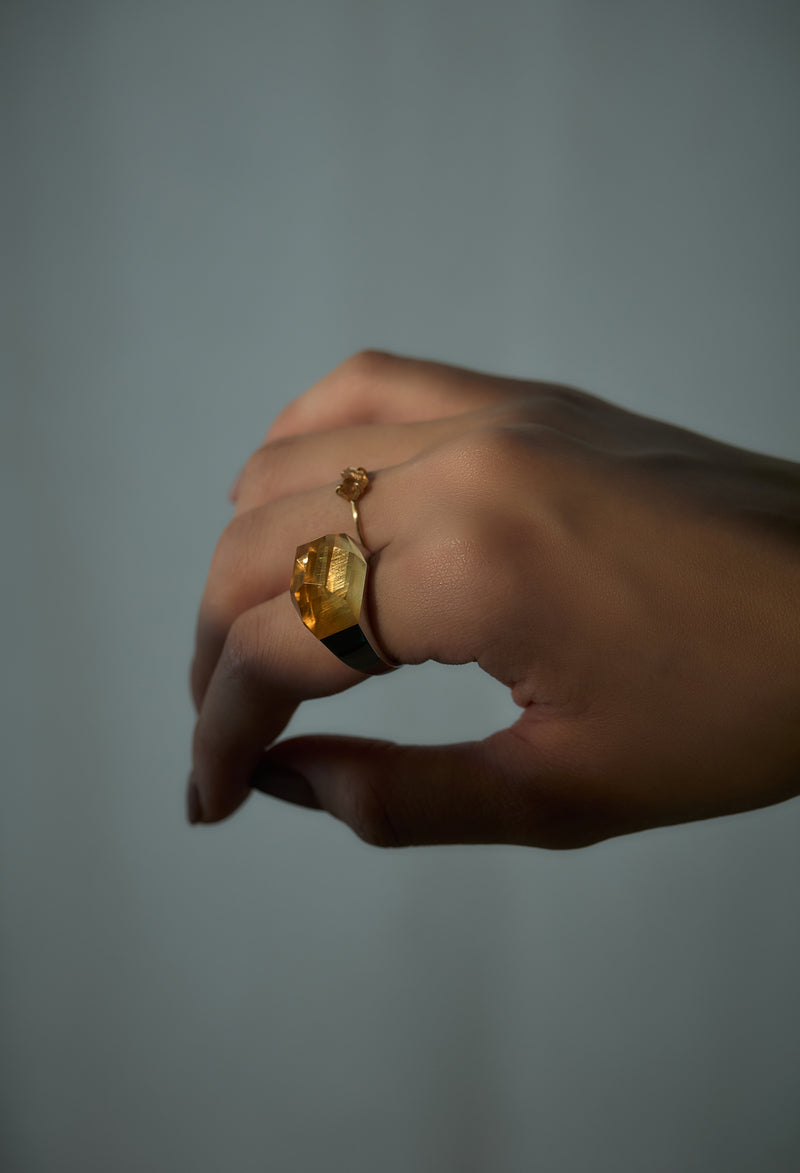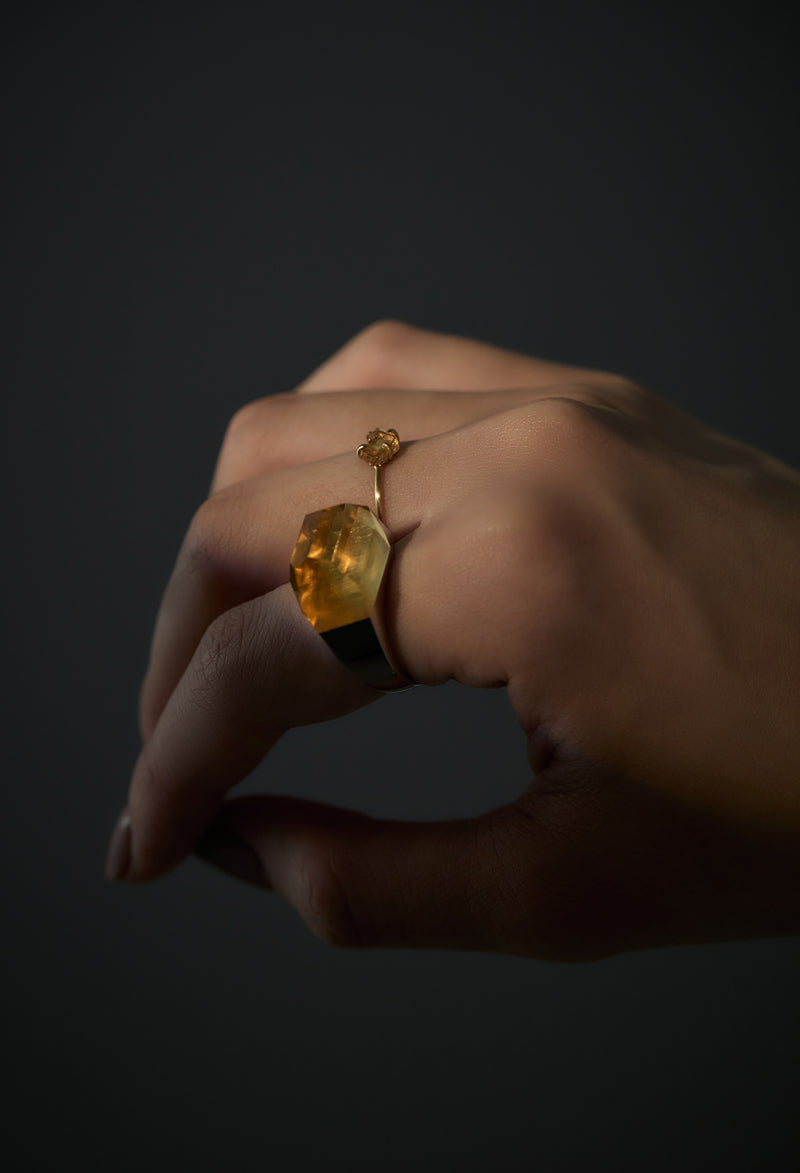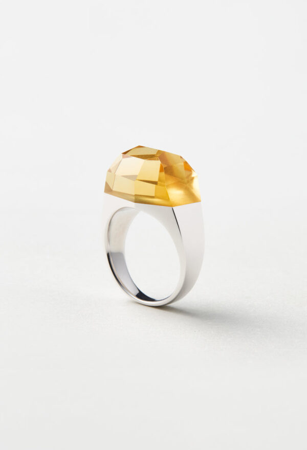 アームを銀色で仕立てると、シトリンのはちみつのような黄色が際立ち、すっきりと爽やかな印象になります。
