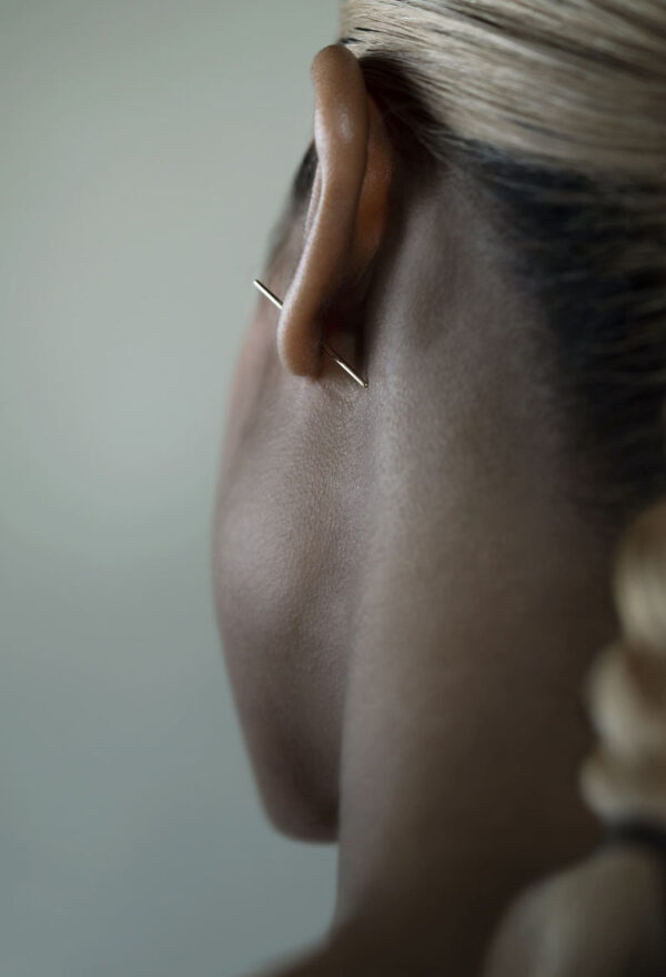 一般的なファッションピアスのポストが0.8mm前後であるのに対し、tiny wildの一番太い部分は約1.2mm。中央のくぼみ部分は約0.8mmです。