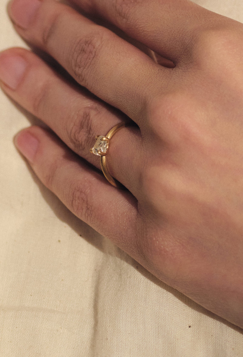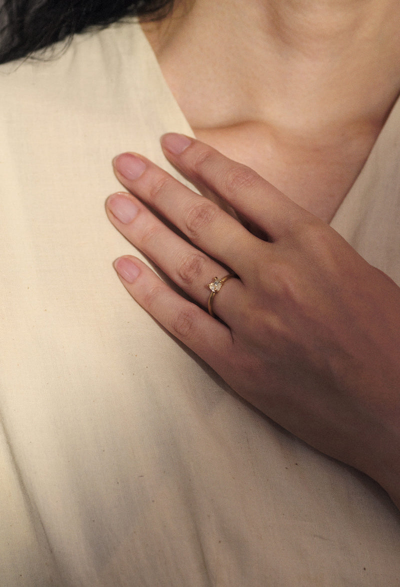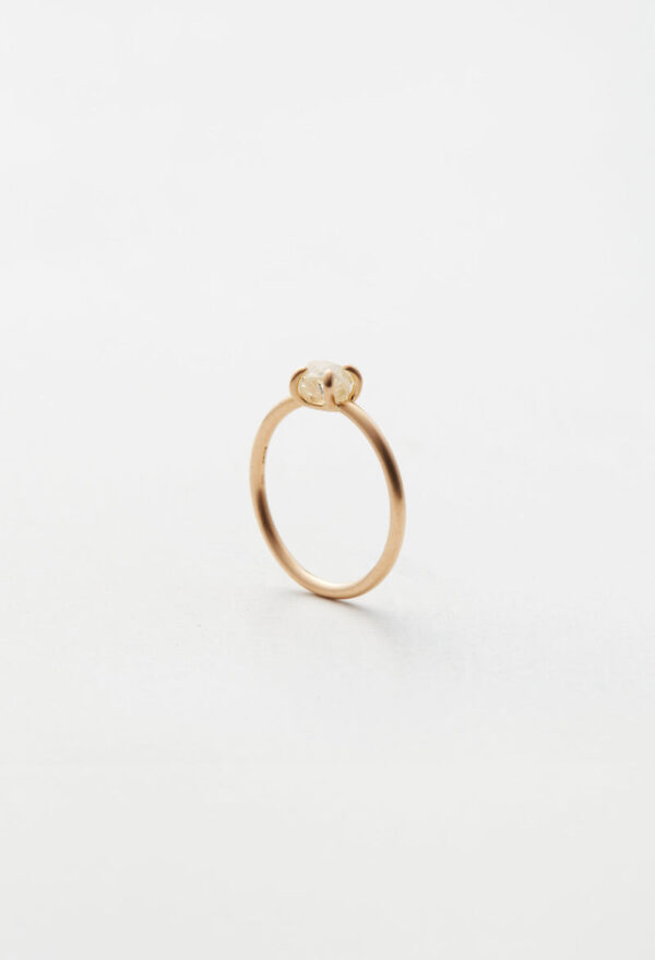 未研磨のダイヤモンドは、石に入った光を逃さず内部で反射を繰り返すため、まるで自ら輝かんとする力強い存在感を放ちます。無垢な輝きは身につけた方の素の魅力を引き出してくれます。