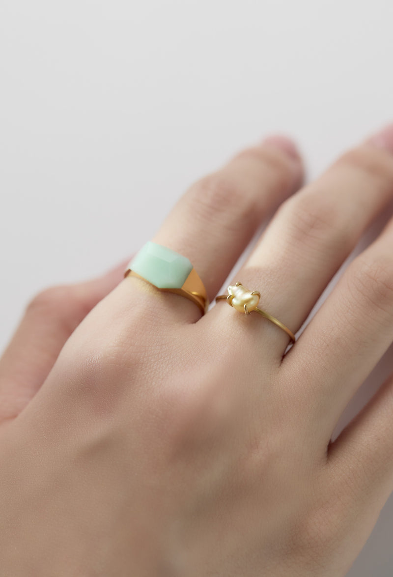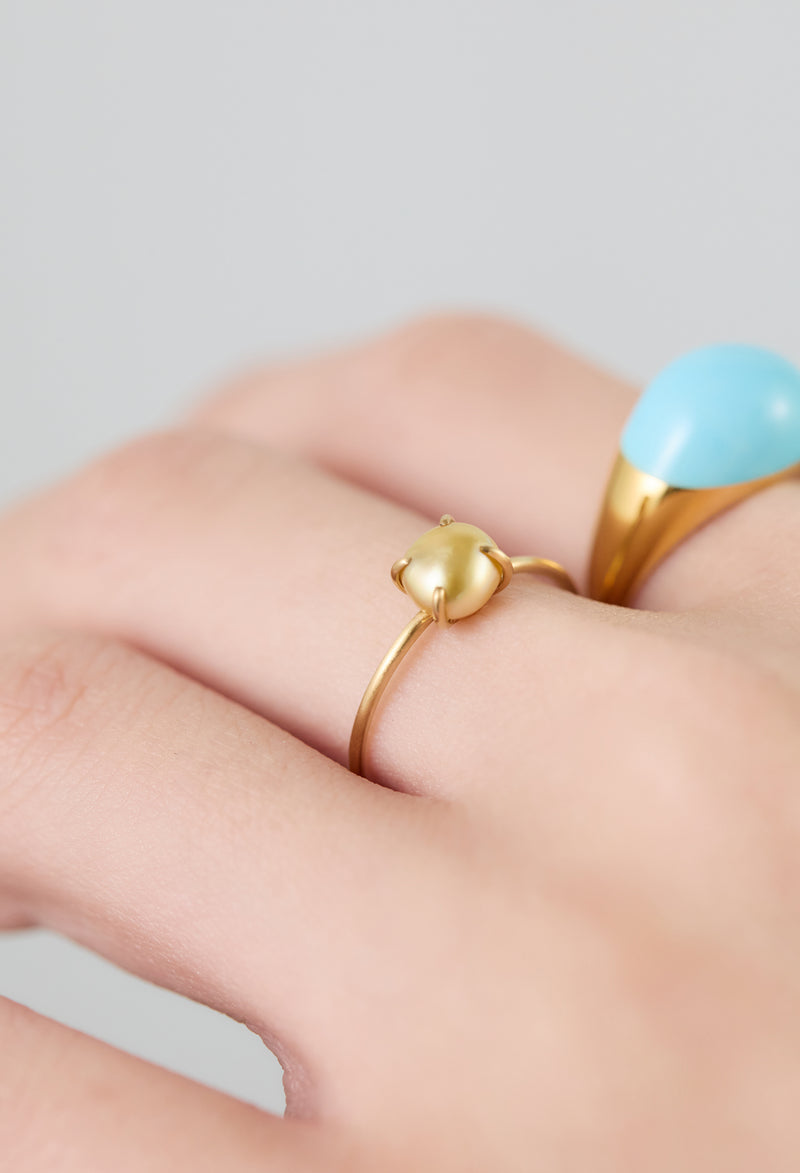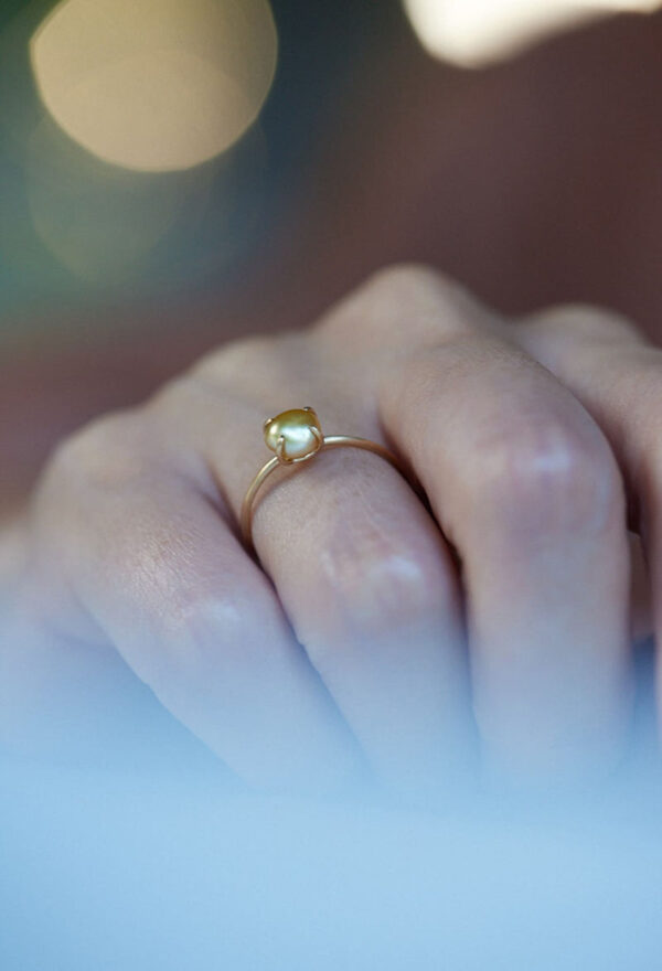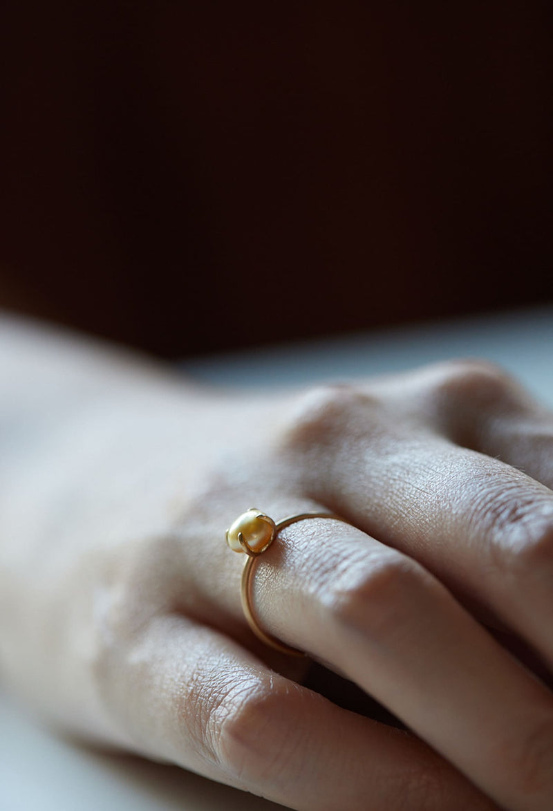 Golden South Sea Keshi Baby Pearl Gem Ring