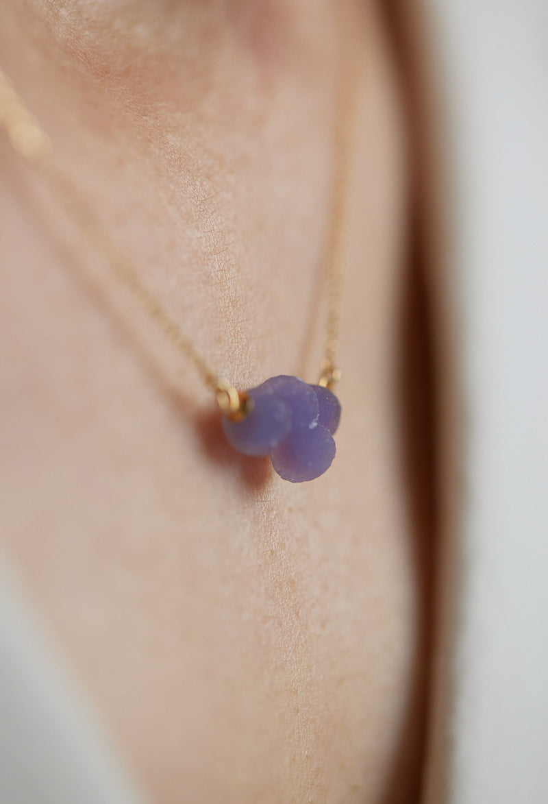 グレープカルセドニーは、インドネシアのスラウェシ島で最初に発見され、2015年頃から流通がはじまり密かにファンを増やし続けている隠れた人気者です。形がまん丸に整ったものや表面に強い光沢のあるものは希少です。
