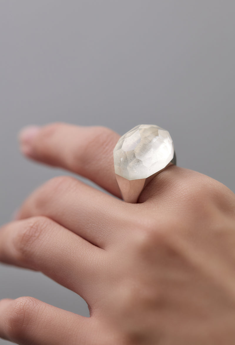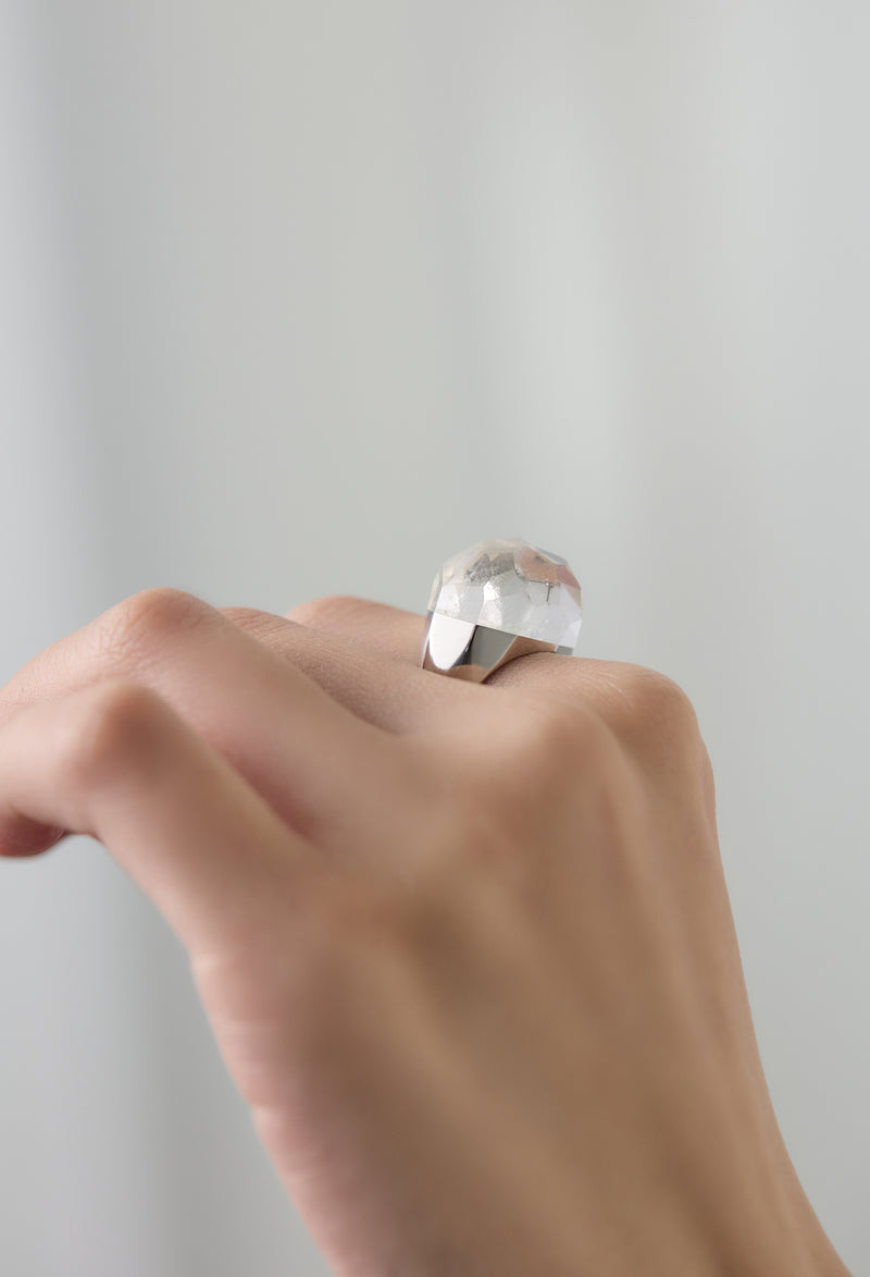 Himalaya Quartz Rock Ring / Faceted Round / Silver