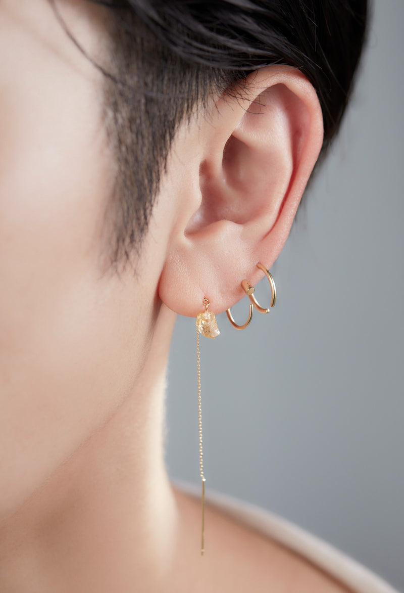 一般的なファッションピアスのポストが0.8mm前後であるのに対し、tiny wildの一番太い部分は約1.2mm。中央のくぼみ部分は約0.8mmです。