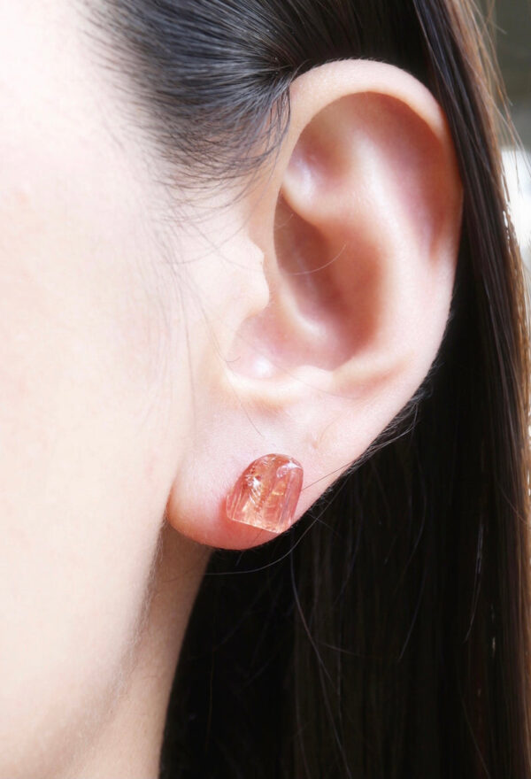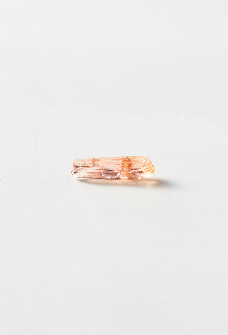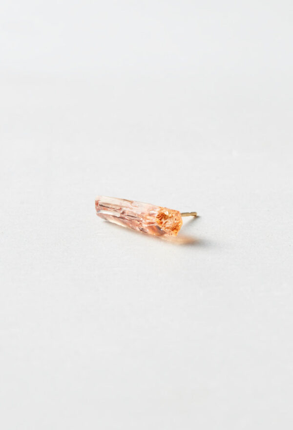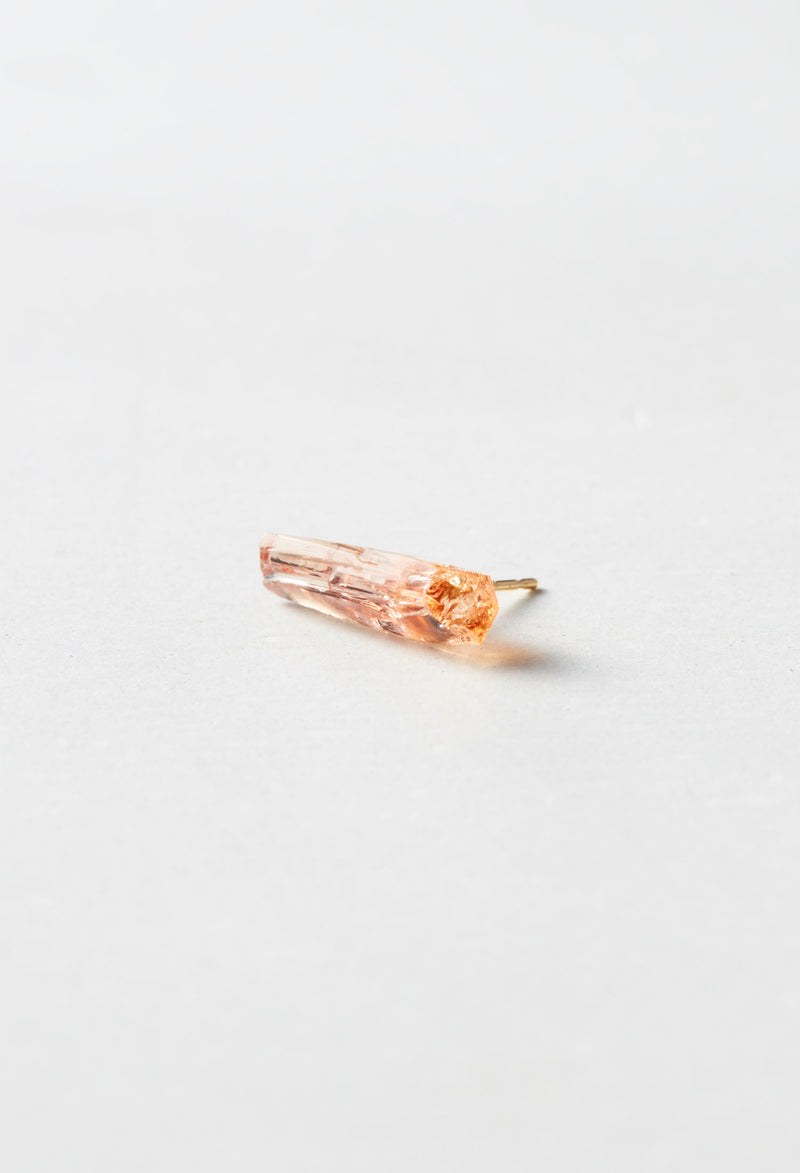 インペリアルトパーズはブラジルのオウロ?プレートで採れることで有名です。 このトパーズをインペリアルたらしめるのは、水酸基が生み出すオレンジがかった黄色やピンク。 オレンジとピンクが絶妙にとろけあったようなインペリアルトパーズのきれいな結晶は見る人の心を踊らせます。 結晶そのものが創りだした面をありのままに身につけられるよう仕立てています。