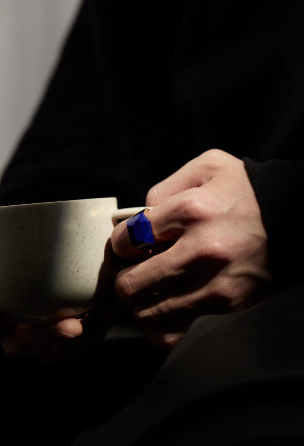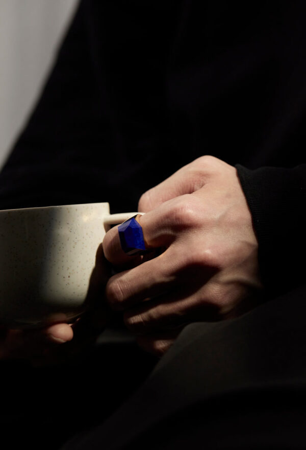 光を通さない重厚感のあるラピスラズリの藍色は、月のない夜空の深さに似ています。宵闇と少し違うのは、星のようにきらめく内包物を有した石もあるところ。