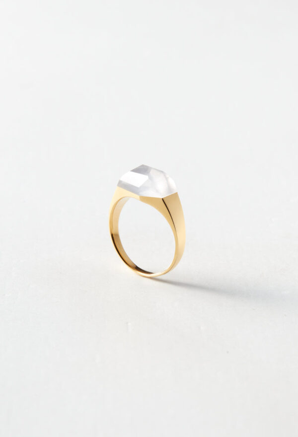 柔らかな白さをもったミルキークォーツのリングは清潔感溢れる印象です。この優しい乳白色は細かな内包物によって作られます。 太陽光の下で見ると石の中に光が溜まり、ずっと見ていたくなる美しさです。