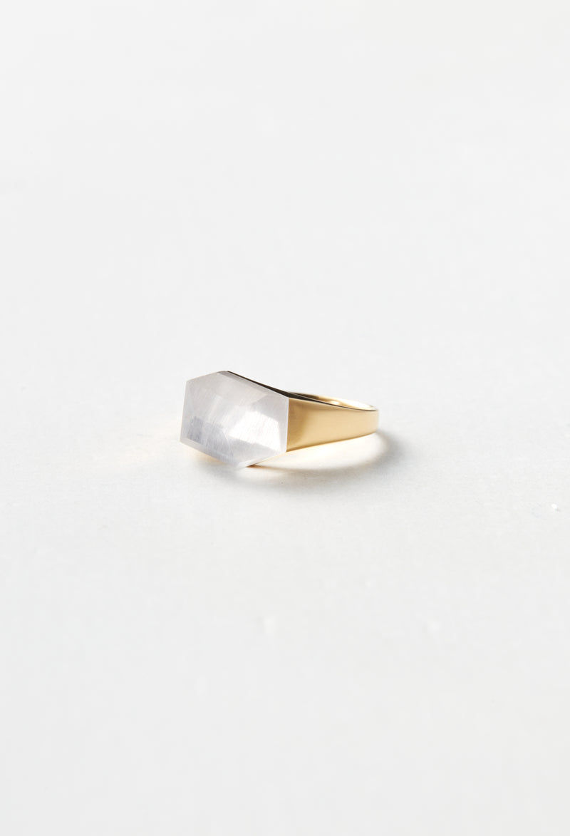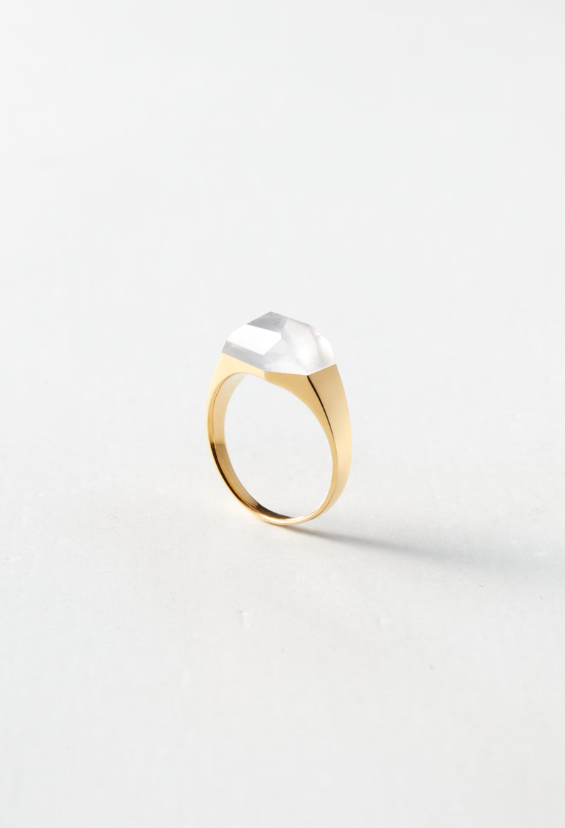 Milky Quartz Mini Rock Ring / Crystal / Yellow