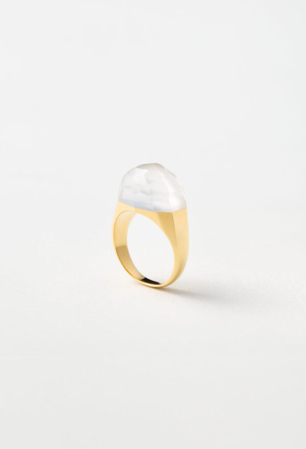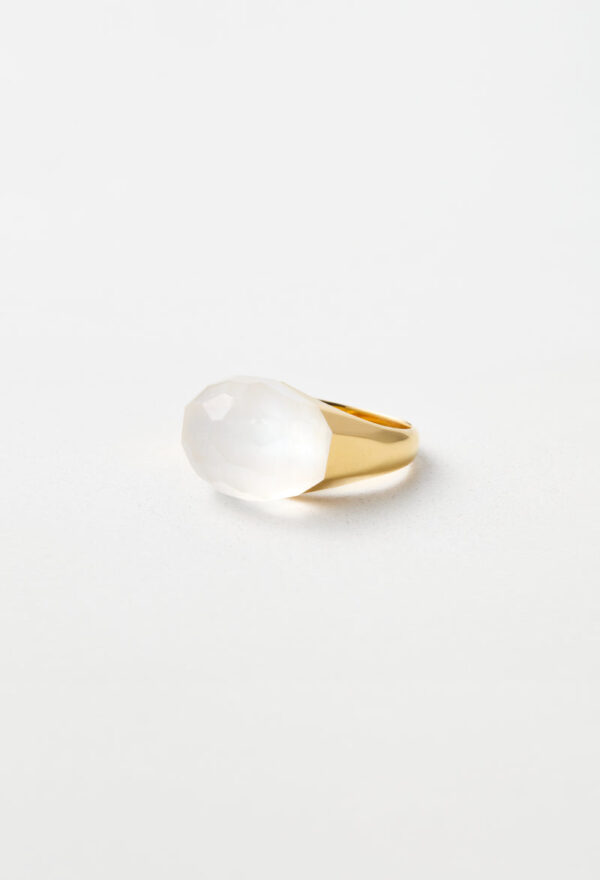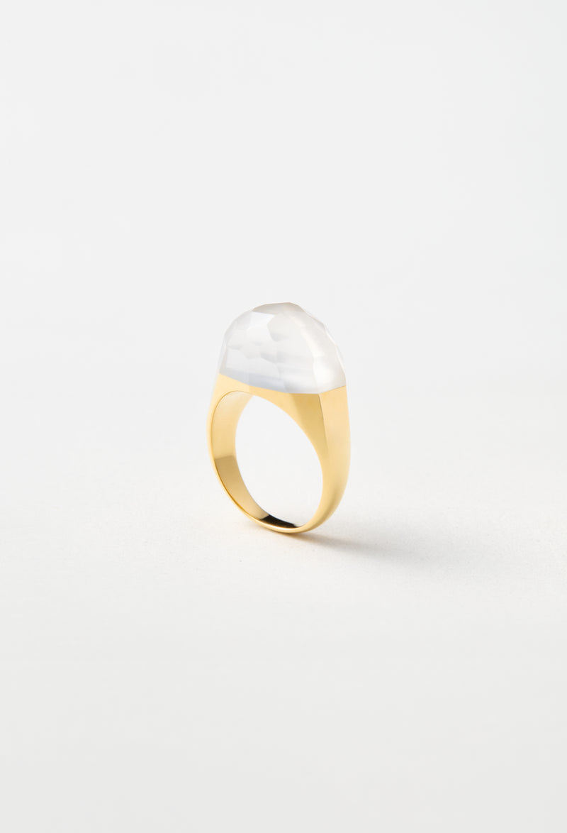 Milky Quartz Mini Rock Ring / Faceted Round / Yellow