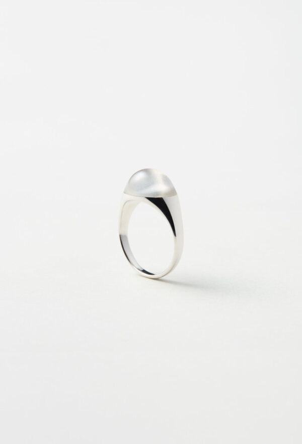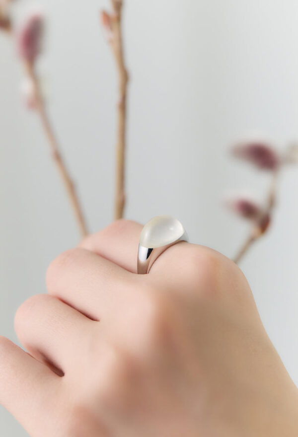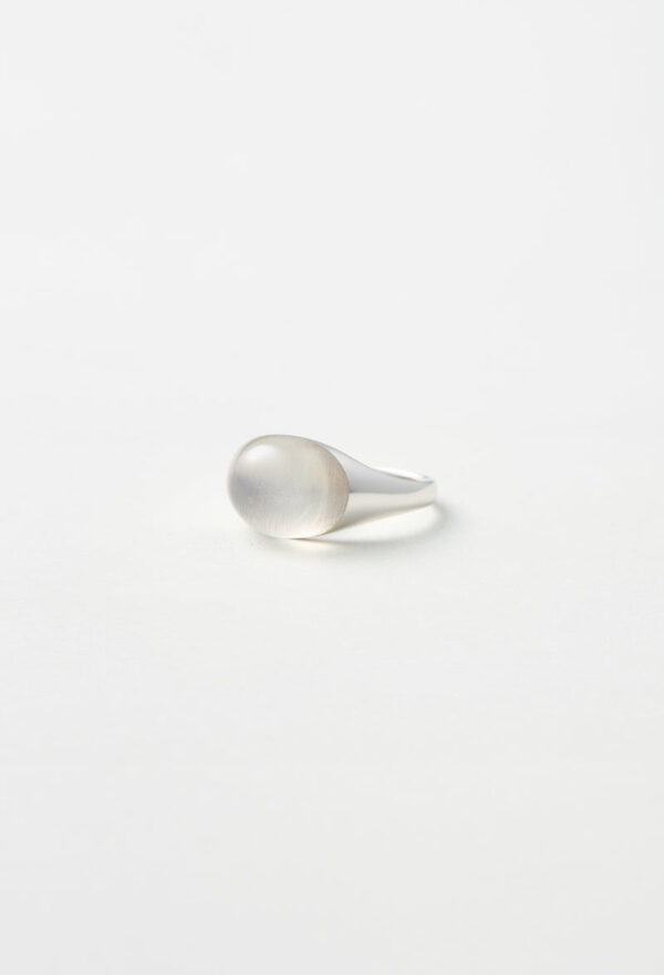 柔らかな白さをもったミルキークォーツのリングは清潔感溢れる印象です。この優しい乳白色は細かな内包物によって作られます。