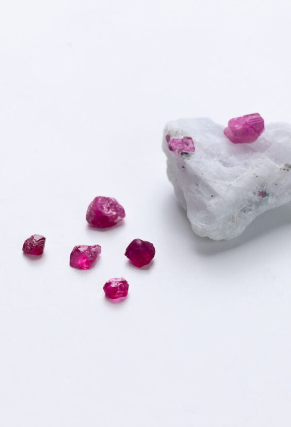 モゴック産のルビーは不純物の少ない大理石から産出されることで、赤色が強く出る傾向があります。 深い赤色のルビーはより価値が高いとされています。中でも最高品質のルビーは「ピジョン?ブラッド」と呼ばれ、高値で取引されています。