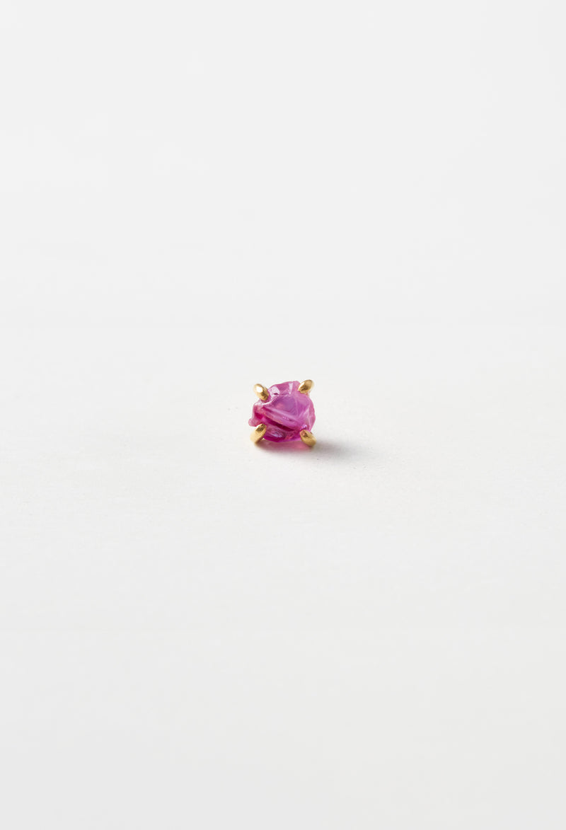 内側からみなぎる生命力を感じさせる鮮烈な発色に引きこまれてしまいます。 力強い原石の姿をそのままに、石には穴を開けず爪留めでお仕立てしました。