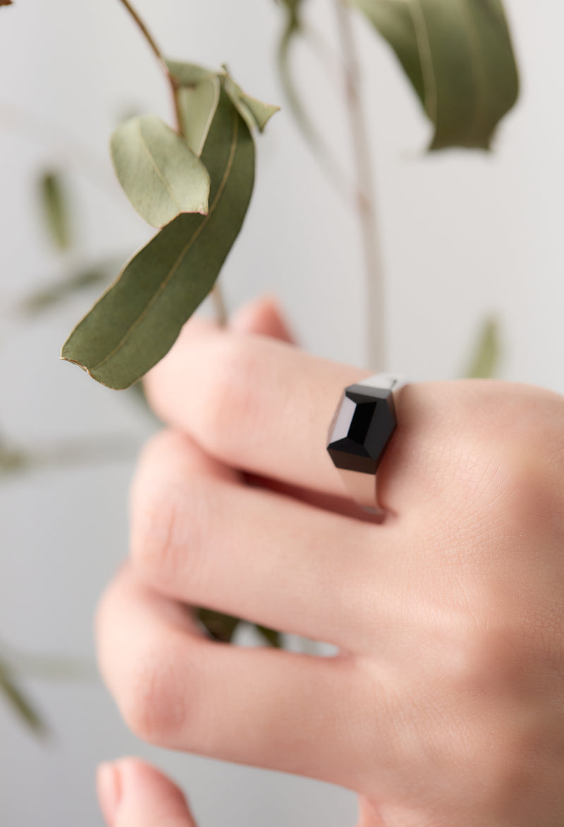 Onyx Mini Rock Ring / Crystal / Silver