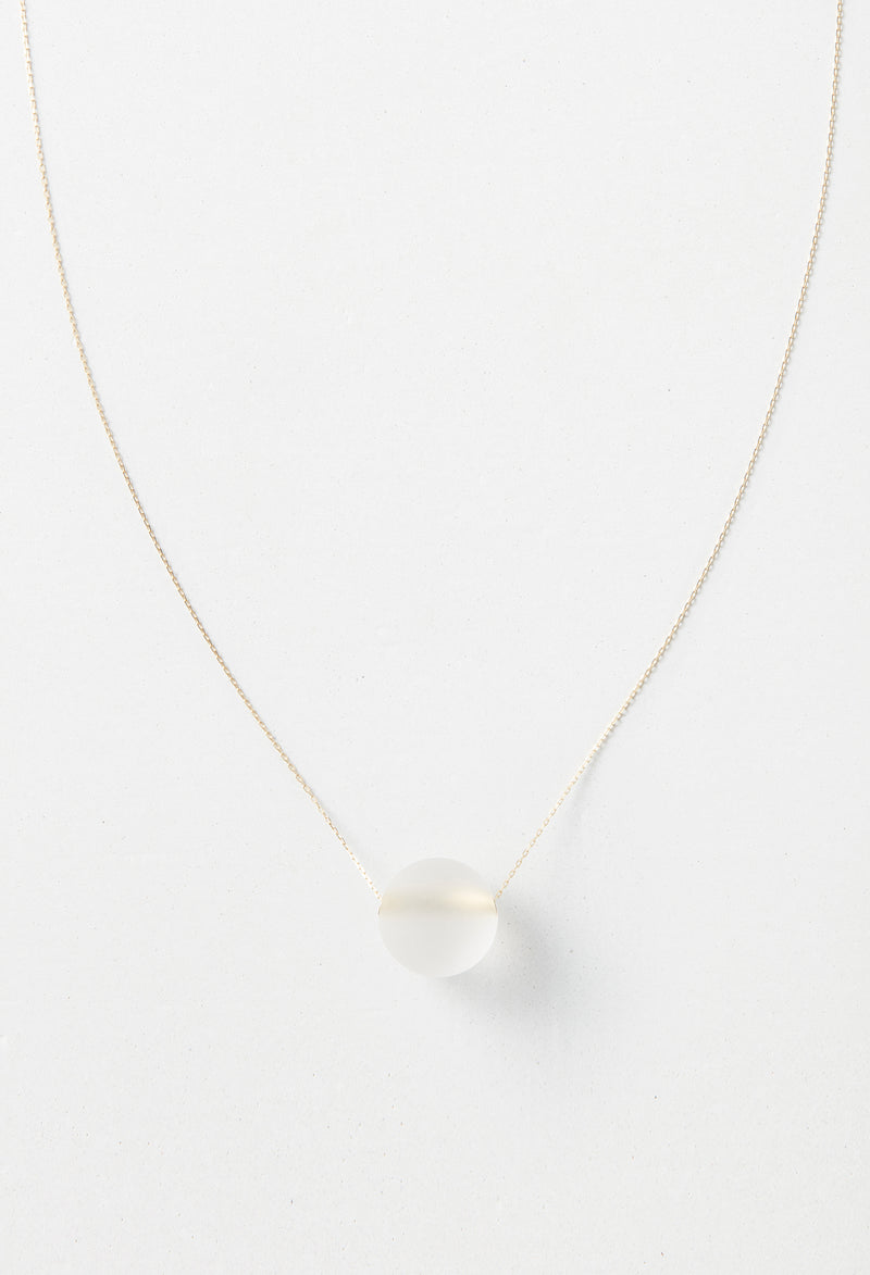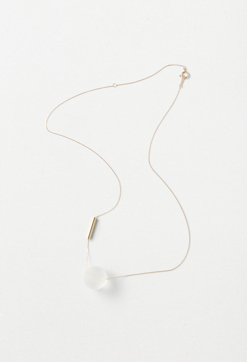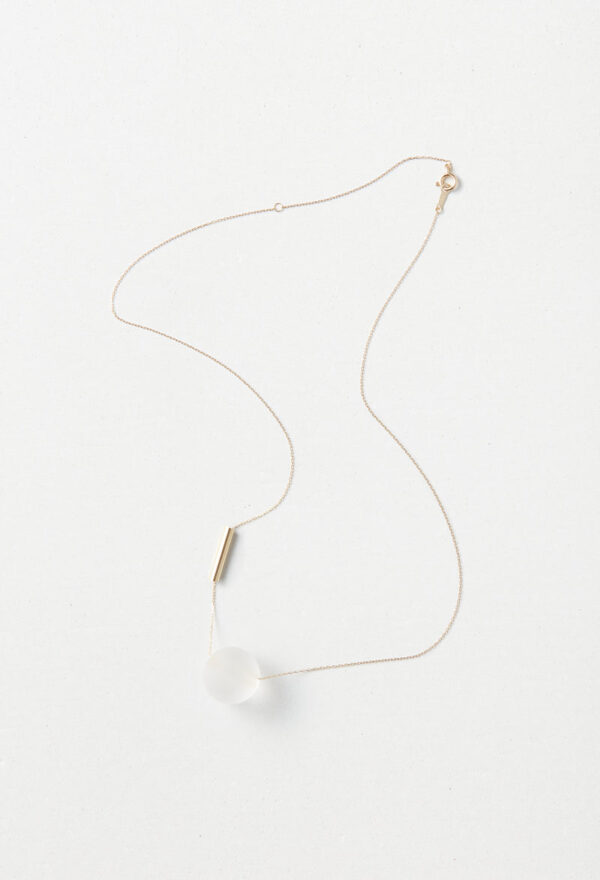 砂糖衣をまとった松露のような愛らしいピアス。つい触れてみなくなる球体の水晶は、職人が昔ながらの技法でひとつひとつ手擦りし、制作しています。セミマットに仕上げることにより、首元にやわらかな光を湛えたような印象のアイテムになりました。
