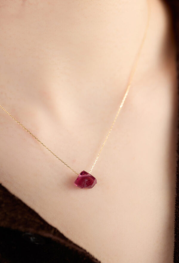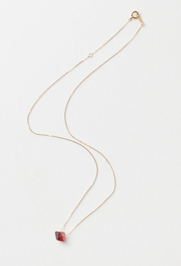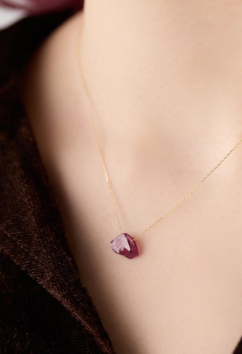 バラ色のガーネットと呼ばれるロードライト。ギリシャ語で「ロード」は「バラ」を、「ライト」は「石」を表します。 赤ワインを彷彿とさせる気品が特徴です。 デザイナーがタンザニアにて買い付けました。
