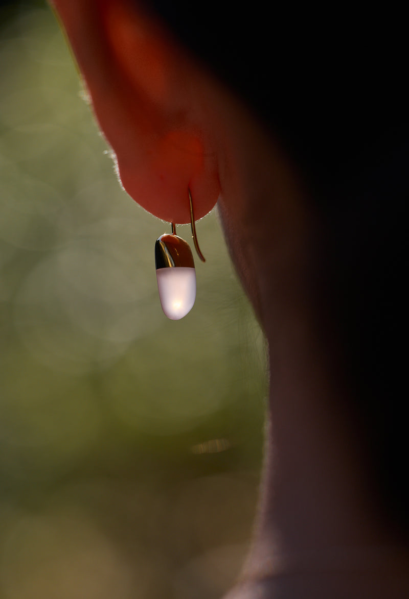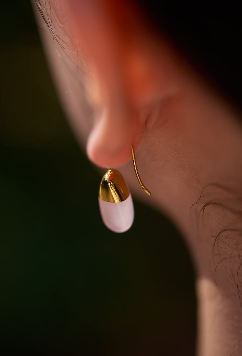 Rose Quartz Rock Pierce / Vertical Round Hook