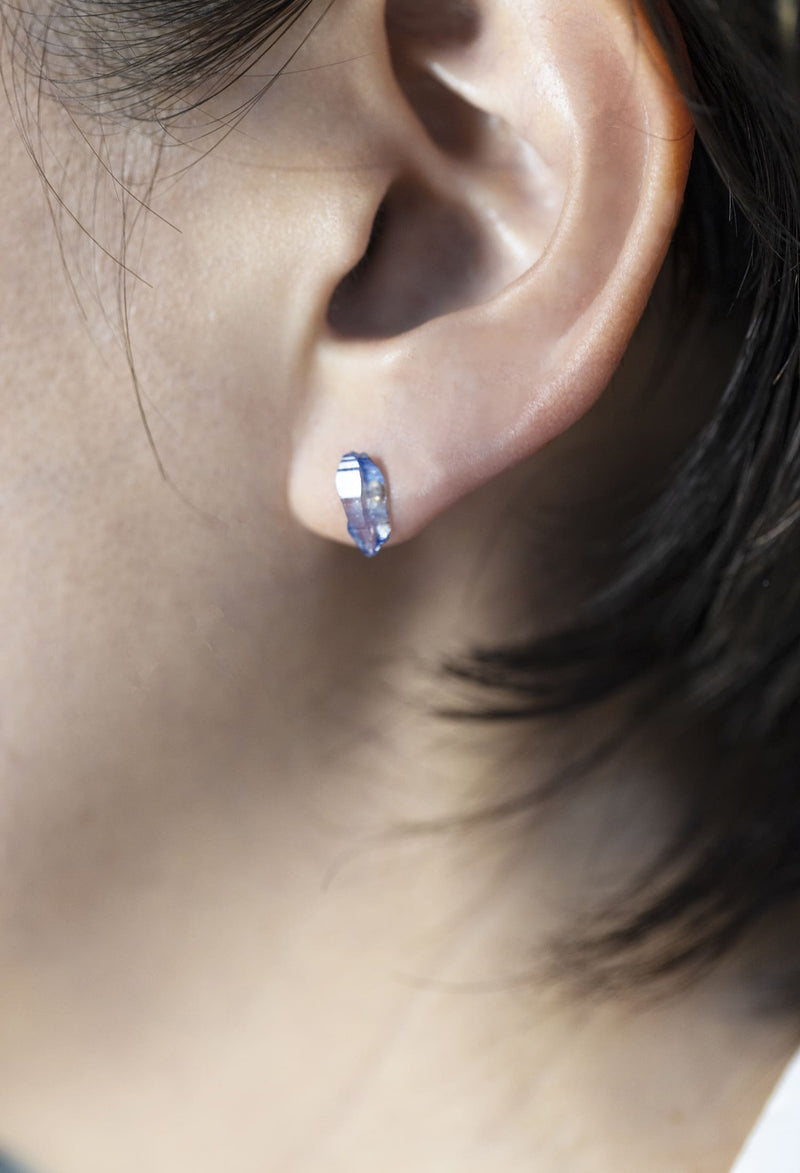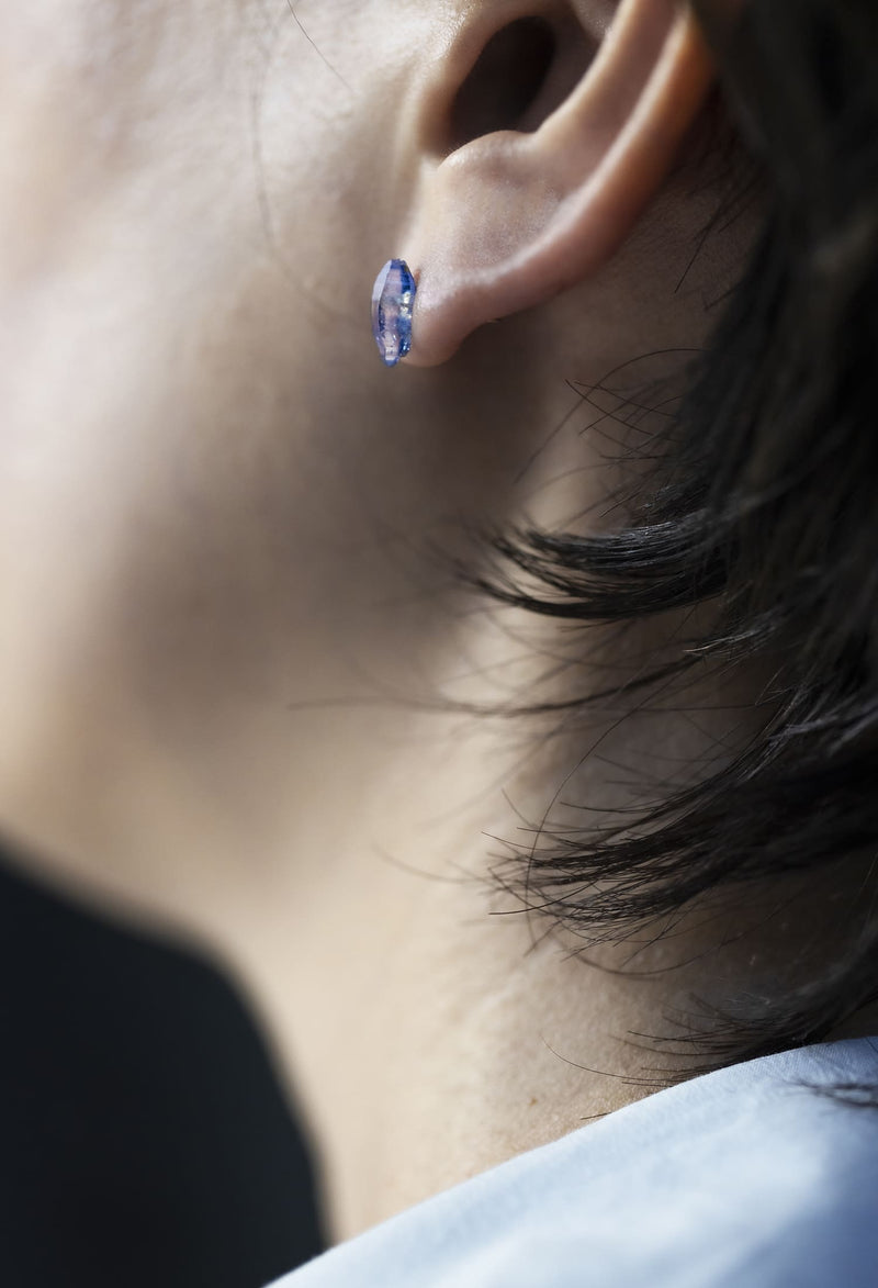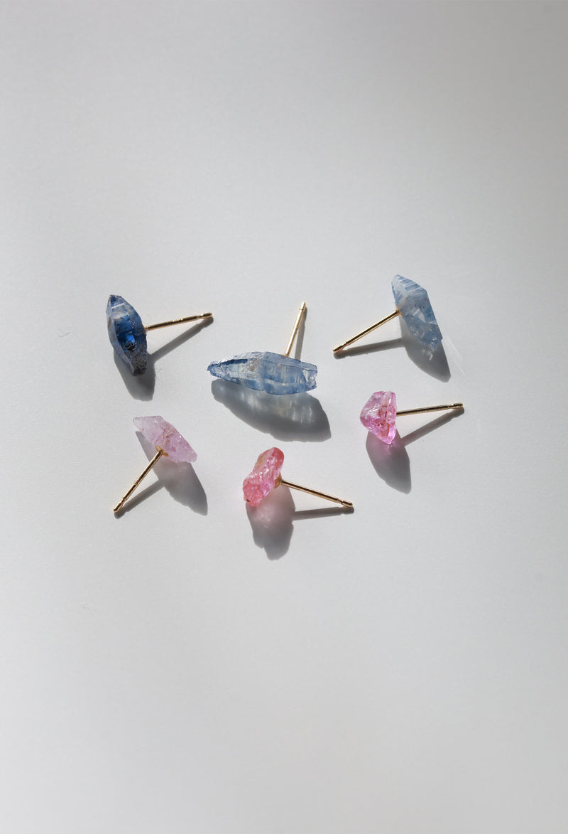 スリランカ産のサファイア結晶。糸車状の結晶を余すことなく楽しめるピアスです。ブルー?ピンク?イエローなど多彩なカラーが存在します。