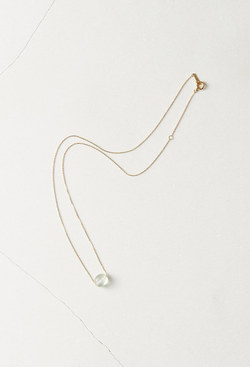コロンと愛らしい丸みは人工的に成型されたものではなく、上流から川を下るあいだに、岩や石にぶつかって自然についた丸みです。石自体は透明に近いですが、表面がセミマットなので内側から仄かに発行するようなやわらかな光を纏います。