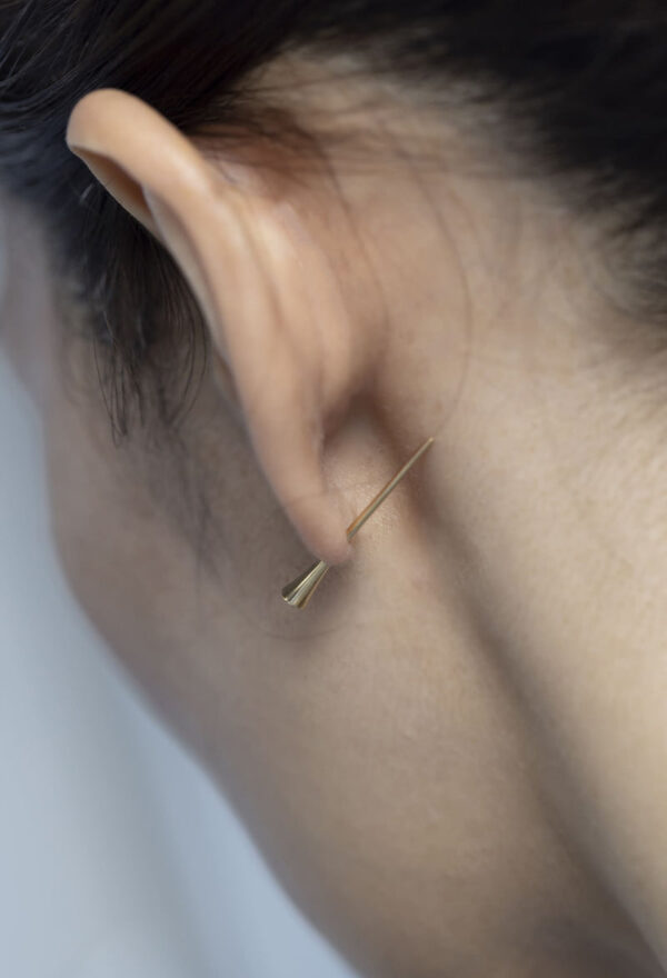 キャッチを使用せず、突き刺しただけで身につけられるように設計されています。装着部分に小さなくぼみを設けた新しいセッティングです。