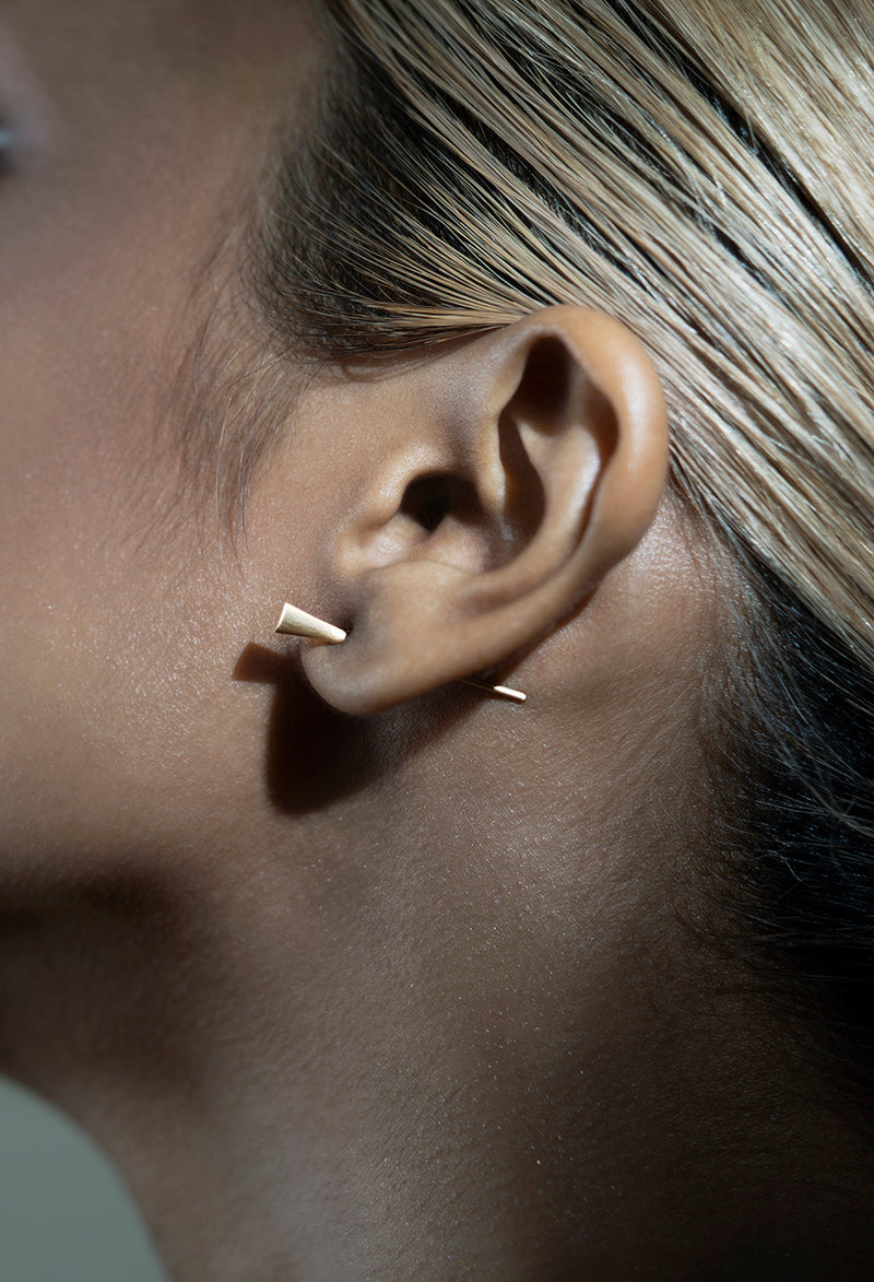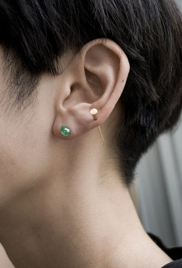 キャッチを使用せず、突き刺しただけで身につけられるように設計されています。装着部分に小さなくぼみを設けた新しいセッティングです。