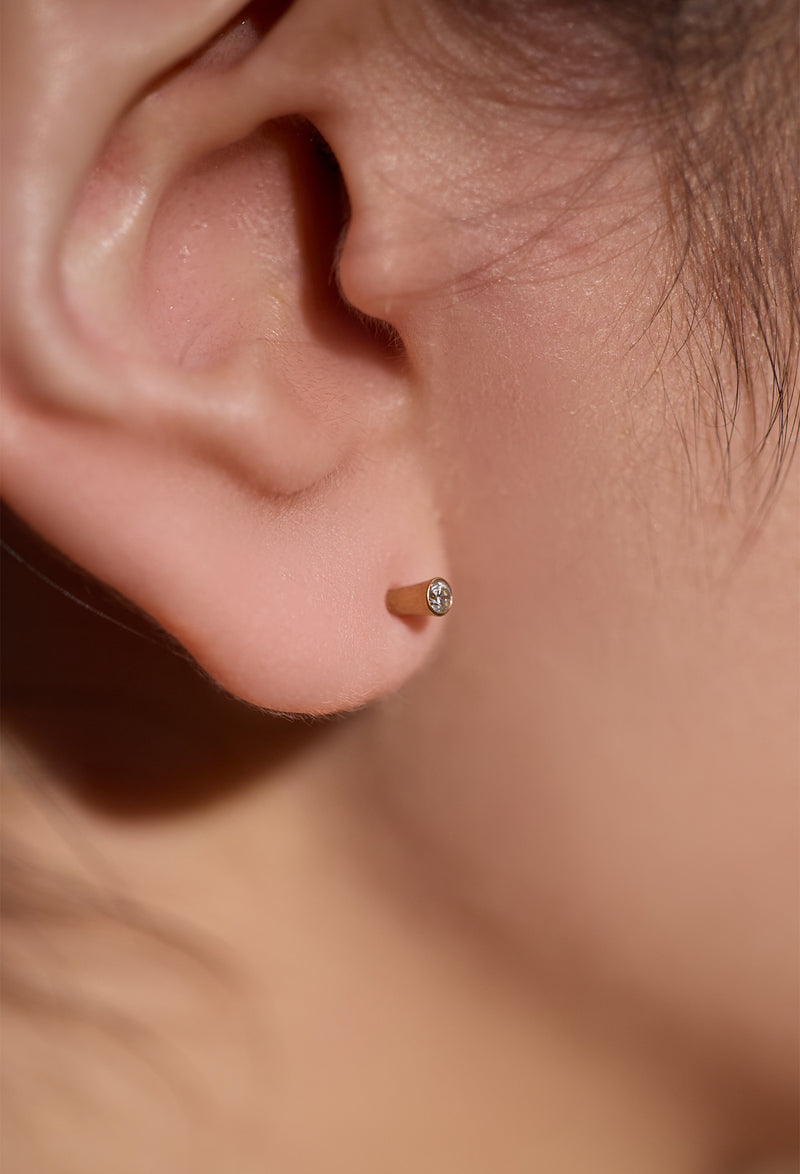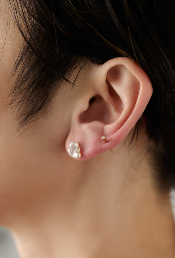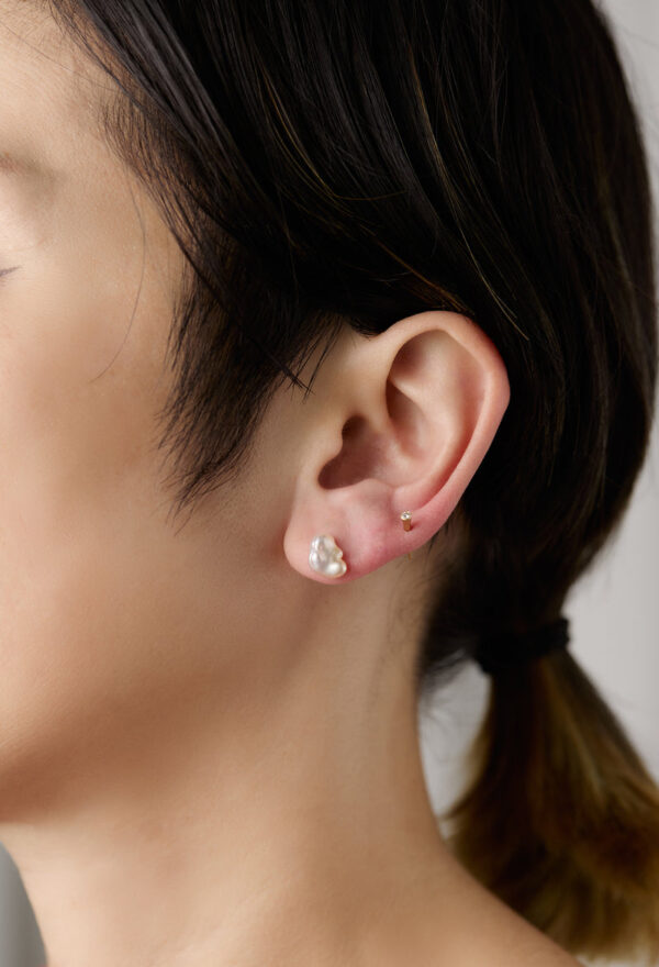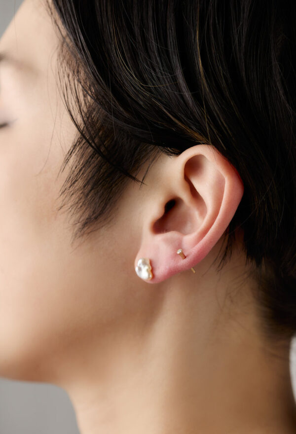 キャッチを使用せず、突き刺しただけで身につけられるように設計されています。装着部分に小さなくぼみを設けた新しいセッティングです。