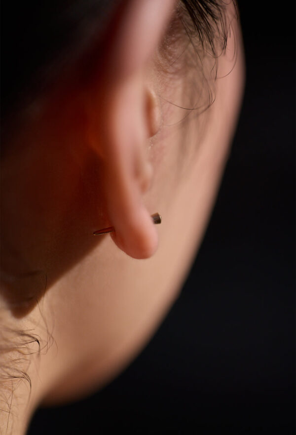 一般的なファッションピアスのポストが0.8mm前後であるのに対し、tiny wildの一番太い部分は約1.2mm。中央のくぼみ部分は約0.8mmです。